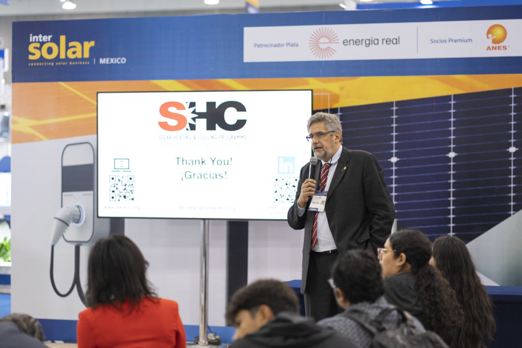 Lucio Mesquita, Chair of the IEA SHC presenting at the Innovation Hub. Copyright: Intersolar Mexico